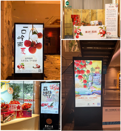 荔枝季期间,旅游控股集团在白天鹅宾馆、白云宾馆、广东迎宾馆、广东大厦等场所,精心布置的“高州荔枝”主题展陈,通过营造视觉化、沉浸式体验,直观展示荔枝品质特色,精准触达商旅及休闲人群。