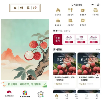白天鹅酒店小程序上线荔枝营销海报及销售专区