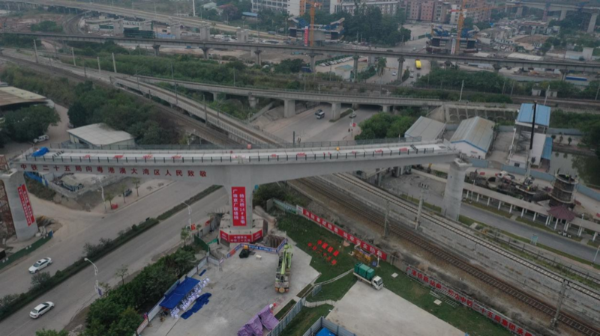 京广三线是京广铁路大动脉的一条重要支线,高峰时段平均每隔5至10分钟就有一趟列车通过,因此项目采取“转体法”施工工艺减少桥梁施工对铁路运营的影响。