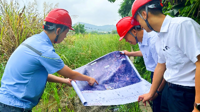 在韶关,粤海水务供水巡查员手持管网线路图,顶着40℃的高温,沿着38公里蜿蜒的南水水库原水管道进行徒步巡查,深入田间、河岸,拨开茂密的草丛,一个点位一个点位地仔细核对,确认检查穿越段防护是否完好,用心保障供水“大动脉”在高温下安然无恙。