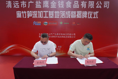 近日,盐业集团下属清远市广盐鹰金钱食品有限公司(以下简称“广盐鹰金钱食品公司”)在广清经济特别合作区广德(英德)产业园举行麻竹笋深加工基地落成暨揭牌仪式。