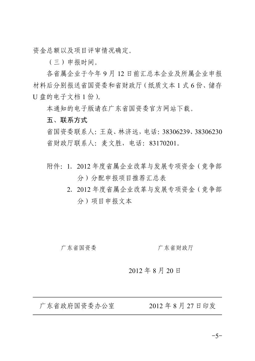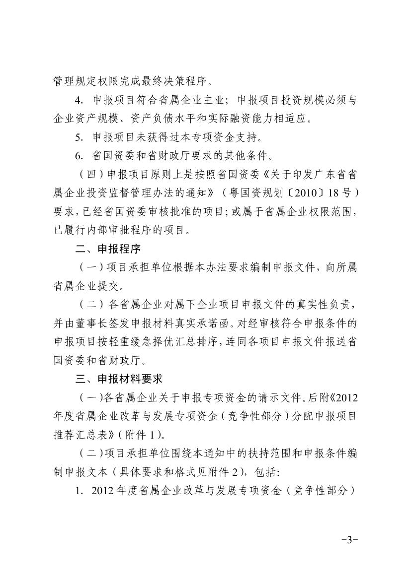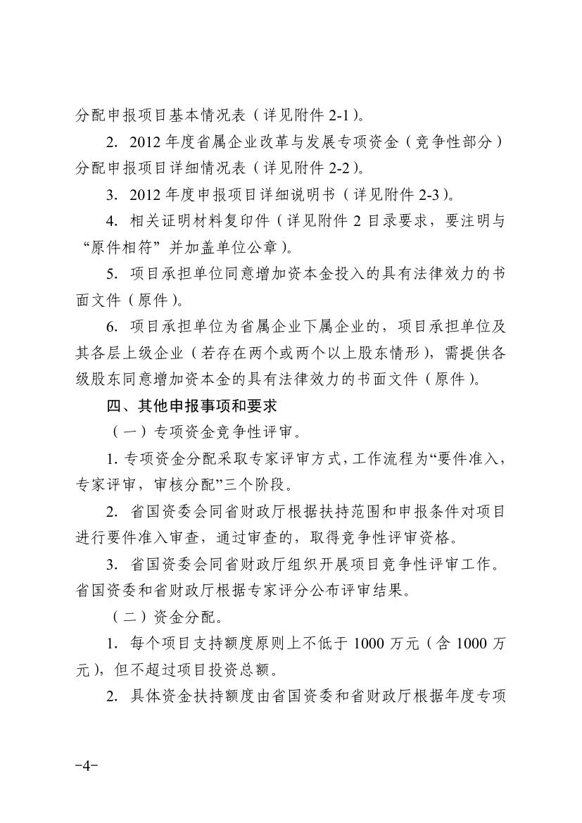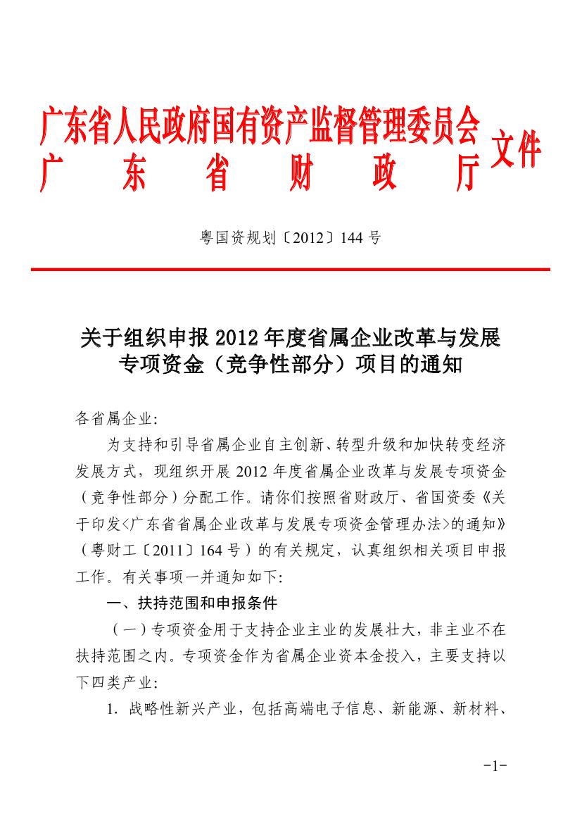 关于组织申报2012年度省属企业改革与发展专项资金(竞争性部分)项目的通知