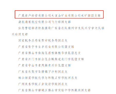 2019年,广晟公司大宝山矿选矿部团支部就曾获评为“全国五四红旗团支部”,今年采矿部团支部又获此称号,这既是对广晟公司共青团工作成效的充分肯定,也是对各级团组织及广大团员青年的鞭策和鼓励。广晟公司将继承和发扬五四精神,坚定理想信念,站稳人民立场,练就过硬本领,投身强国伟业,在实现中华民族伟大复兴中国梦的新长征路上奋勇搏击,以实际行动发扬新时代广晟青年新风采,努力为广晟公司实现“三个重振”贡献青春力量!