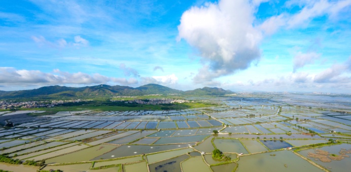 “示范基地采用最新的绿色生态养殖技术养虾,成活率高、品质好、长得快,亩产是土养的十倍,不少村民都过来取经。”