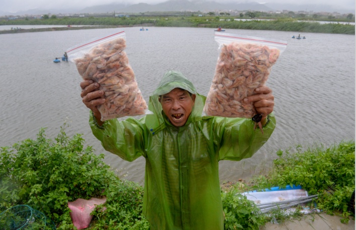 科学养殖出产的虾的产量高、质量好,给了村民很好的示范作用。(摄影:王飞)