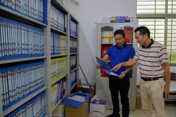 扶贫工作队办公室摆满了帮扶资料。(摄影:王飞)