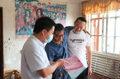 温志强(右一)走访贫困家庭。(摄影:张振)