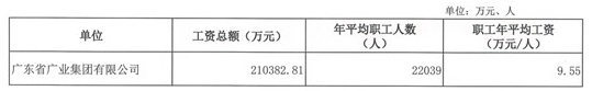 广物控股集团2019年度职工平均人数为11977人,实际发放工资总额为116782.07万元,职工年平均工资为9.75万元。