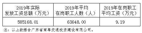 2019年,粤海控股平均职工人数13,346人,实发工资总额19.96亿元,职工年平均工资14.95万元。