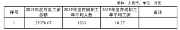 2019年度全年应发工资总额32591.46万元,在岗职工年平均人数为2552人,在岗职工年平均工资为12.77万元。