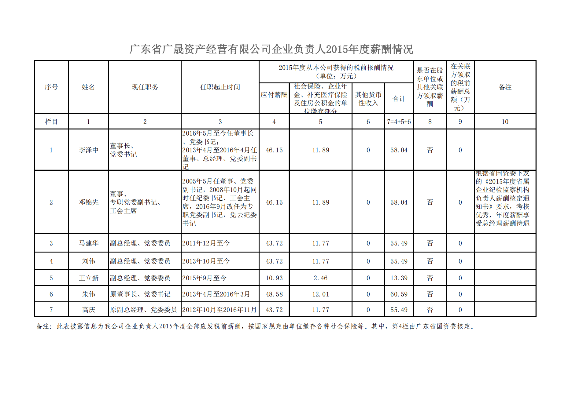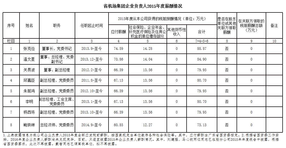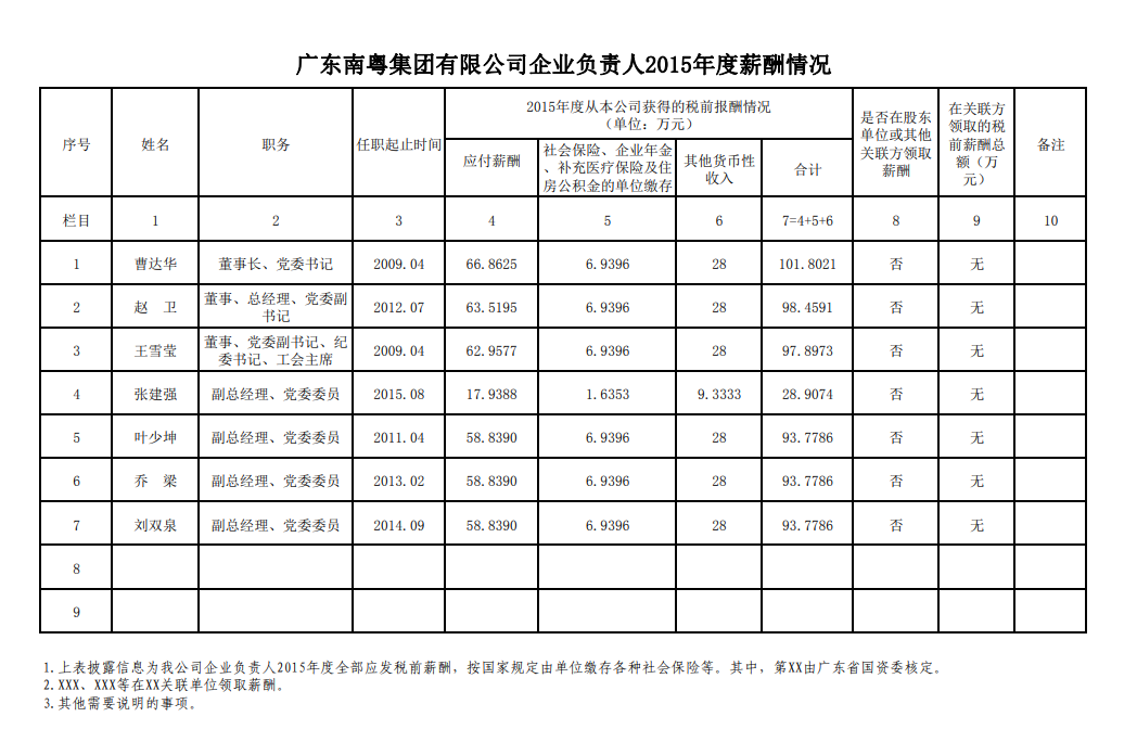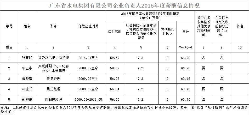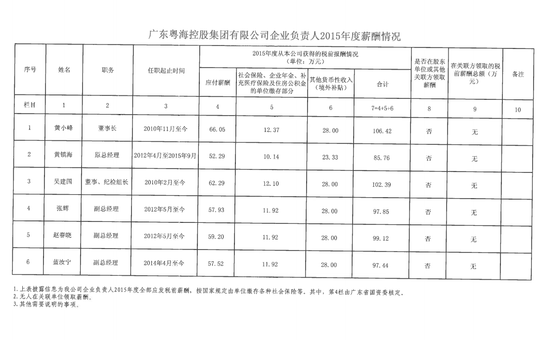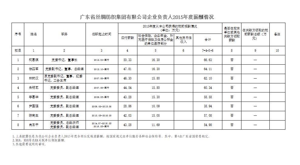 监管企业负责人2015年度薪酬情况