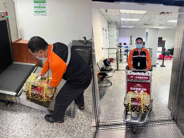 白云地勤行李保障人员在收运时,先要关注宠物状态,再仔细检查航空箱的完好性、打包是否符合标准,并及时与值机人员沟通宠物的状况。在运送过程中,行李保障人员也是小心万分:航空箱要轻拿轻放,送运途中不刺激宠物,还要时刻关注宠物的状态,保护宠物周全。