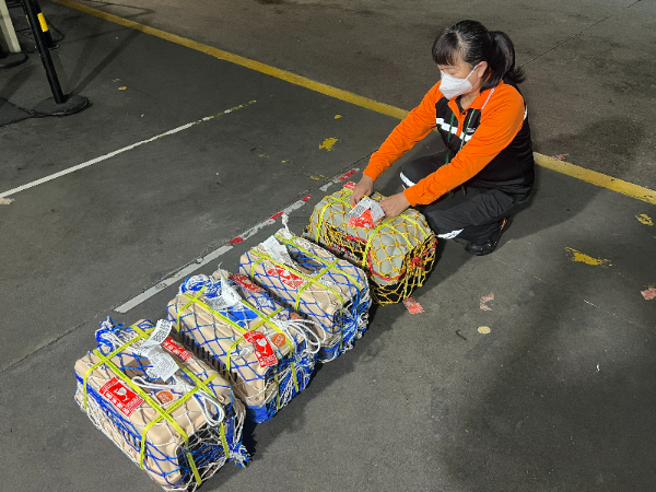 为了保证爱宠的安全,旅客需购买符合航空标准的宠物出行航空箱,但市面上的航空箱质量良莠不齐,部分航空箱存在设计制作粗糙、材质低劣等问题。为了保证宠物的安全,白云地勤为旅客提供了航空箱打包服务,在航空箱的基础上套网兜,再用绳子进行两横两竖“井”字形打包,为宠物系好“安全带”,让旅客放心。