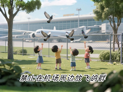 禁止在机场周边放飞鸽群(AI图片生成工具:即梦)