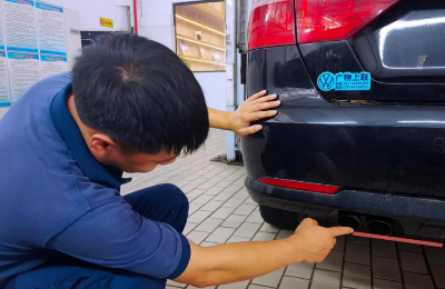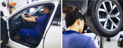 维修师傅对车辆制动系统、轮胎状况进行检查