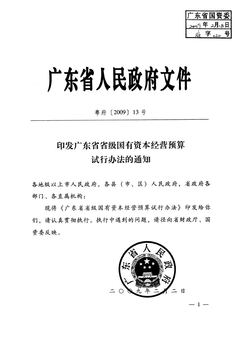 关于印发广东省省级国有资本经营预算试行办法的通知