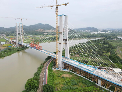 近日,由铁投集团所属粤东城际公司投资、建设的粤东城际铁路控制性工程——跨南溪河特大桥完成最后一节钢箱梁精准吊装,顺利实现合龙,为全线贯通奠定基础。